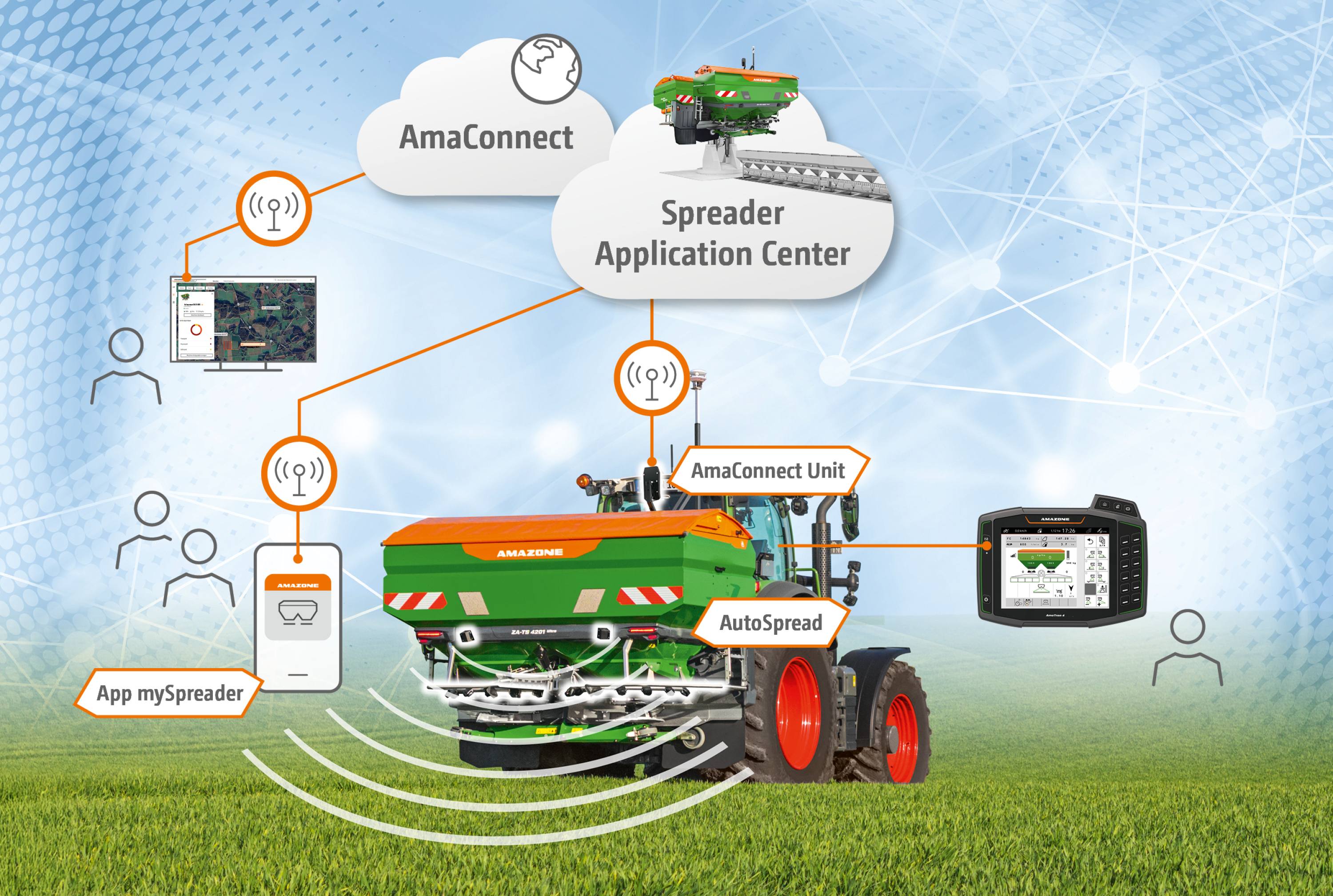 Manufacturers have been working on the development of self-regulating adjustment systems for fertilizer spreaders for years. Thanks to AUTOSPREAD from AMAZONE, there is now a system on the market that allows the fertilizer spreader to adjust itself fully automatically. Sensors measure the spreading direction and distance during spreading. This generates a live spreading pattern that is compared with the digital model from the spreading hall via AI. Based on a comparison of the two, the width and flow settings are automatically adjusted. The familiar systems for edge spreading, section control, and wind correction are also further optimized with AUTOSPREAD. This results in a very even distribution in all field situations.